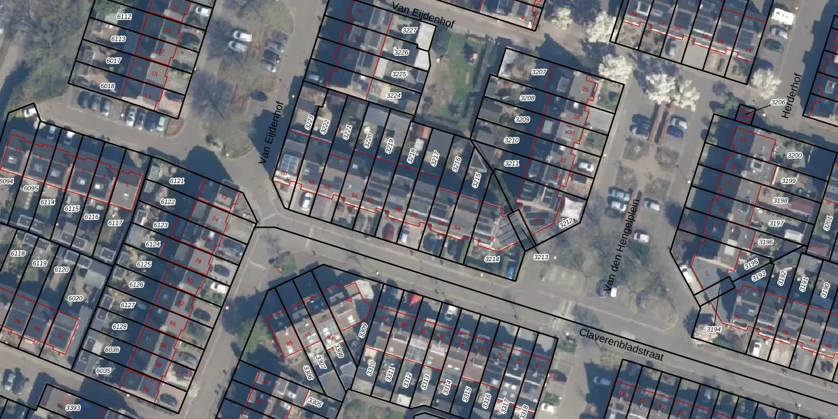 Gebruik de zoekbalk of klik op een perceel voor informatie over de adressen binnen dit perceel.