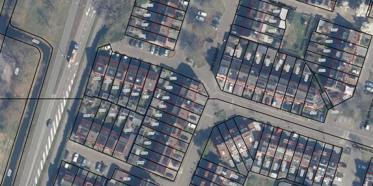 Gebruik de zoekbalk of klik op een perceel voor informatie over de adressen binnen dit perceel.