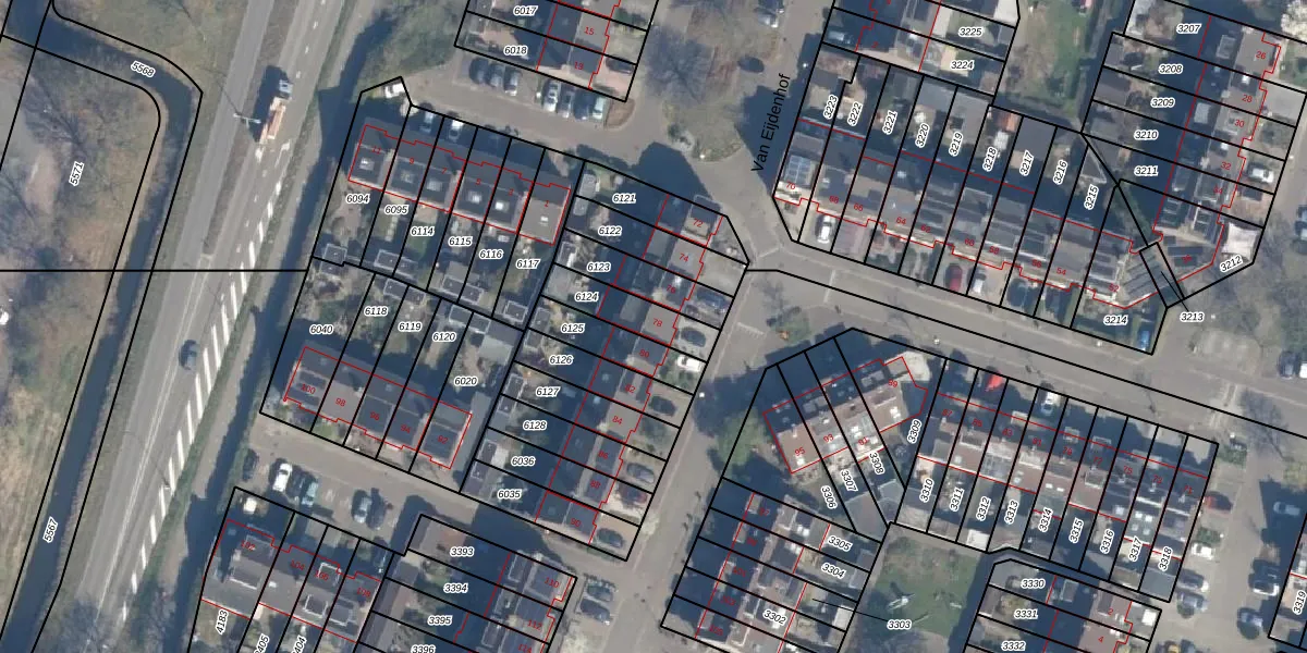 Gebruik de zoekbalk of klik op een perceel voor informatie over de adressen binnen dit perceel.