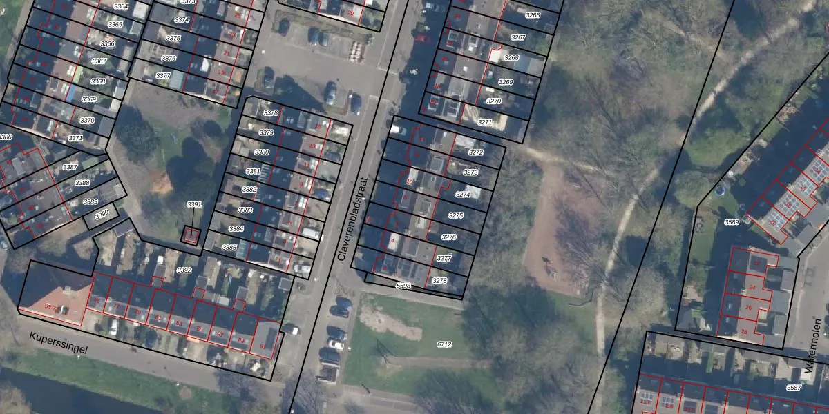 Gebruik de zoekbalk of klik op een perceel voor informatie over de adressen binnen dit perceel.