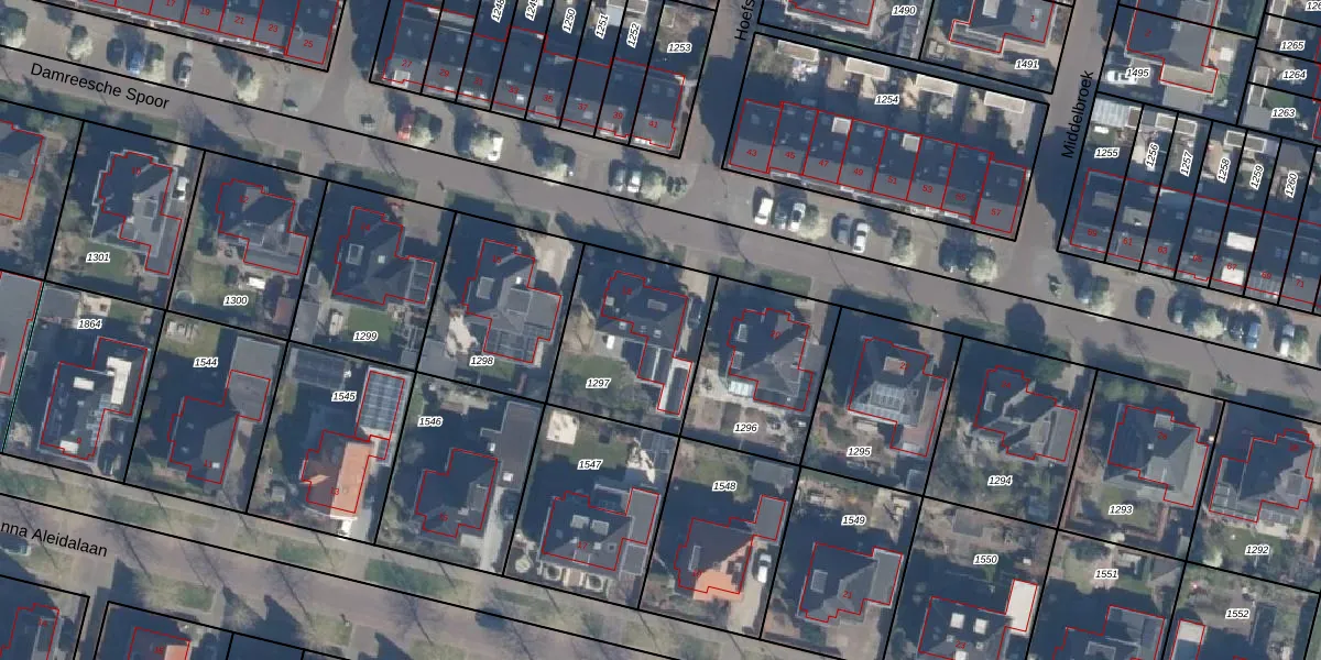 Gebruik de zoekbalk of klik op een perceel voor informatie over de adressen binnen dit perceel.
