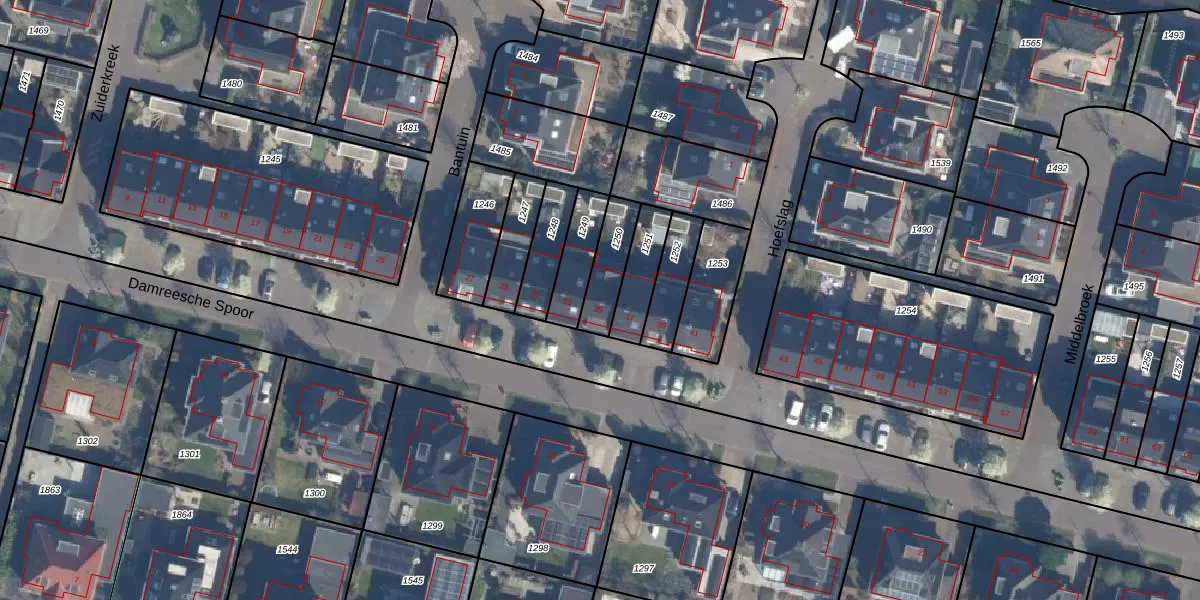 Gebruik de zoekbalk of klik op een perceel voor informatie over de adressen binnen dit perceel.