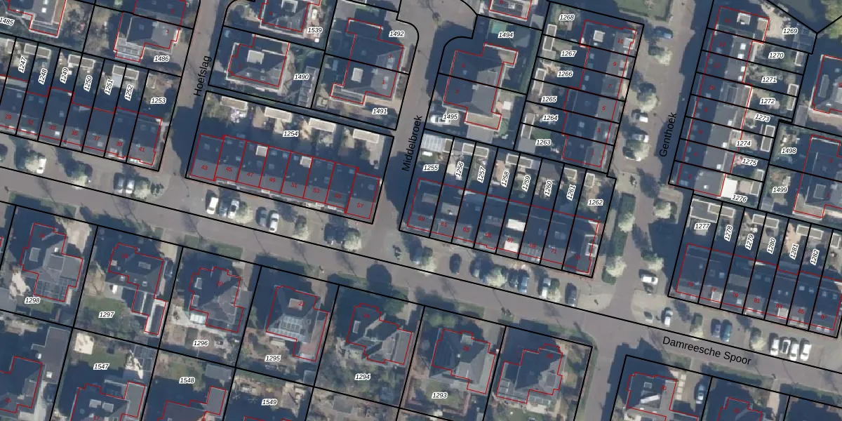 Gebruik de zoekbalk of klik op een perceel voor informatie over de adressen binnen dit perceel.