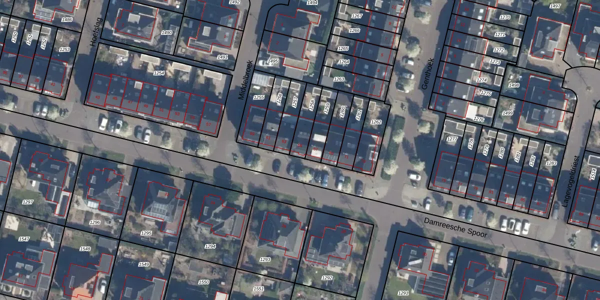 Gebruik de zoekbalk of klik op een perceel voor informatie over de adressen binnen dit perceel.