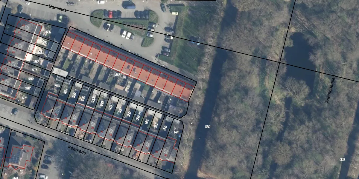 Het perceel waarop Damsluis 28 staat heeft een oppervlakte van 1889 m². Dit is een zeer groot perceel. De perceeloppervlakte wordt geregistreerd door het Kadaster. Gedetailleerde informatie over de maten van dit perceel kunt u vinden in het rapport Kadastrale kaart met maatvoering van Damsluis 28.