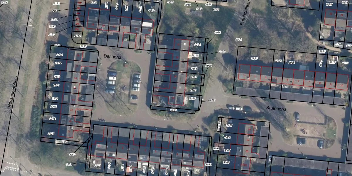 Gebruik de zoekbalk of klik op een perceel voor informatie over de adressen binnen dit perceel.
