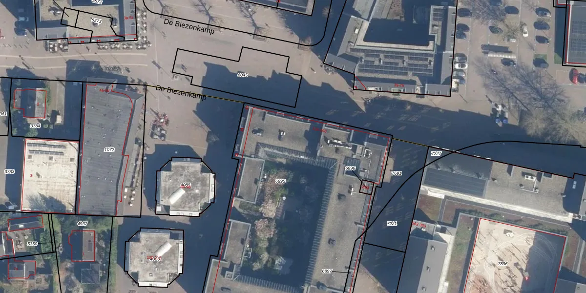 Het perceel waarop De Biezenkamp 174 staat heeft een oppervlakte van 3465 m². Dit is een zeer groot perceel. De perceeloppervlakte wordt geregistreerd door het Kadaster. Gedetailleerde informatie over de maten van dit perceel kunt u vinden in het rapport Kadastrale kaart met maatvoering van De Biezenkamp 174.