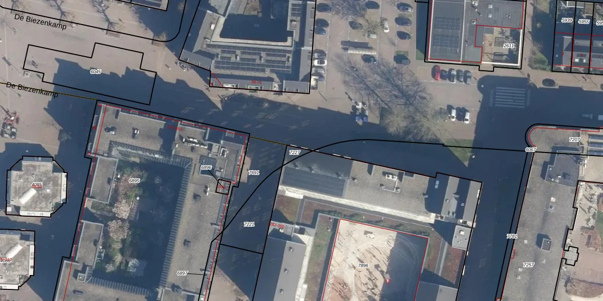 Het perceel waarop De Biezenkamp 310 staat heeft een oppervlakte van 30 m². Dit is een klein perceel. De perceeloppervlakte wordt geregistreerd door het Kadaster. Gedetailleerde informatie over de maten van dit perceel kunt u vinden in het rapport Kadastrale kaart met maatvoering van De Biezenkamp 310.