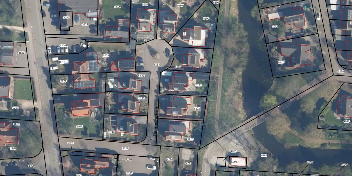Het perceel waarop De Boomgaard 6 staat heeft een oppervlakte van 382 m². Dit is een groot perceel. De perceeloppervlakte wordt geregistreerd door het Kadaster. Gedetailleerde informatie over de maten van dit perceel kunt u vinden in het rapport Kadastrale kaart met maatvoering van De Boomgaard 6.
