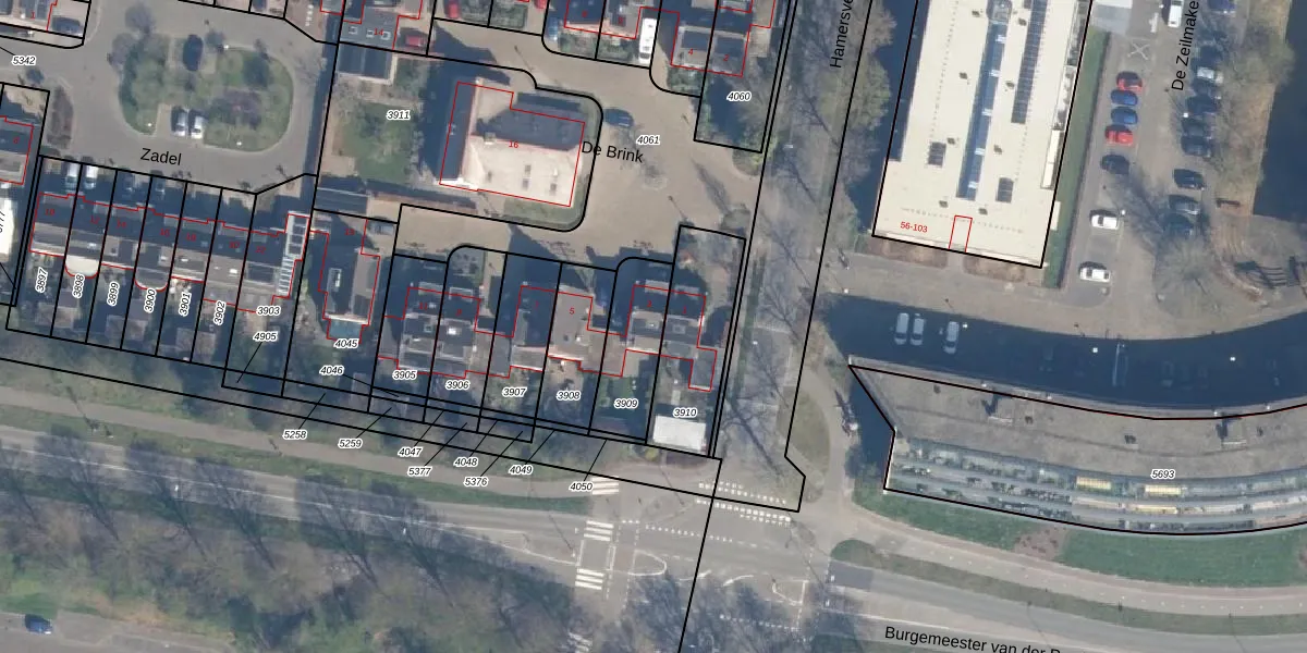 Gebruik de zoekbalk of klik op een perceel voor informatie over de adressen binnen dit perceel.