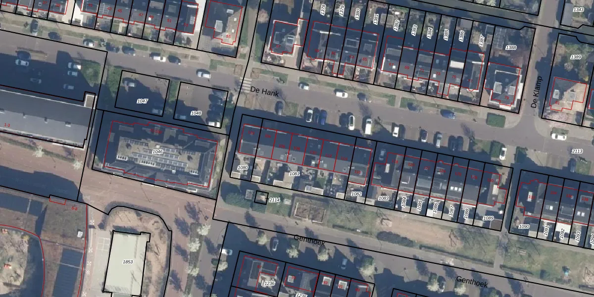 Het perceel waarop De Hank 108 staat heeft een oppervlakte van 694 m². Dit is een groot perceel. De perceeloppervlakte wordt geregistreerd door het Kadaster. Gedetailleerde informatie over de maten van dit perceel kunt u vinden in het rapport Kadastrale kaart met maatvoering van De Hank 108.