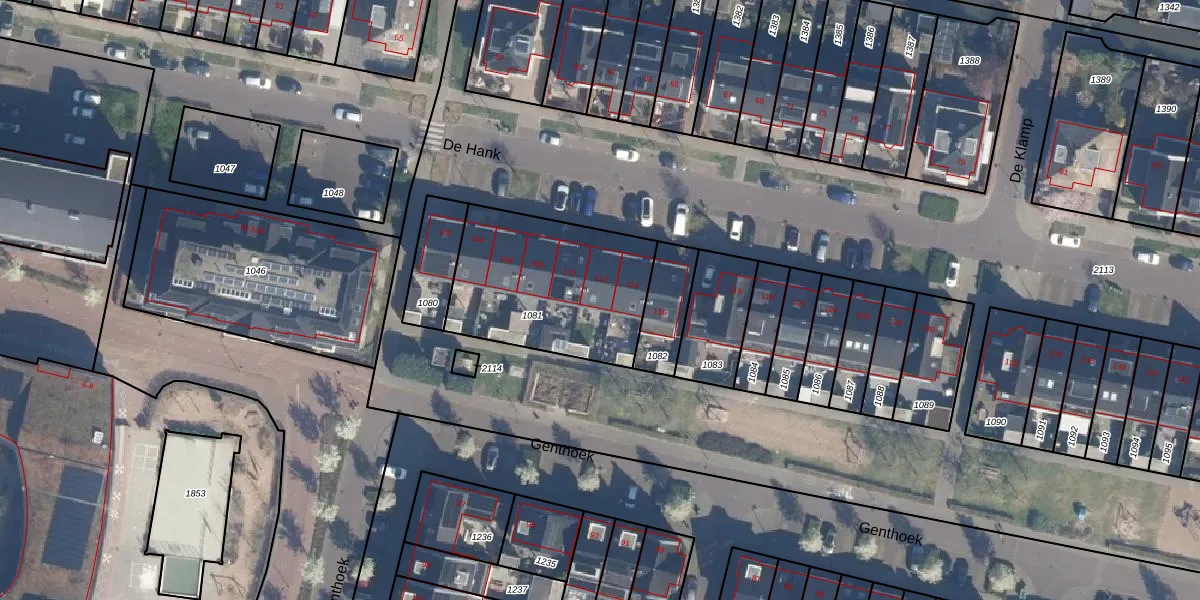 Het perceel waarop De Hank 112 staat heeft een oppervlakte van 694 m². Dit is een groot perceel. De perceeloppervlakte wordt geregistreerd door het Kadaster. Gedetailleerde informatie over de maten van dit perceel kunt u vinden in het rapport Kadastrale kaart met maatvoering van De Hank 112.
