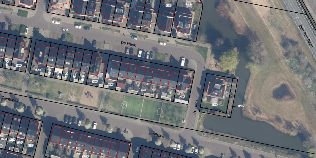 Het perceel waarop De Hank 156 staat heeft een oppervlakte van 809 m². Dit is een groot perceel. De perceeloppervlakte wordt geregistreerd door het Kadaster. Gedetailleerde informatie over de maten van dit perceel kunt u vinden in het rapport Kadastrale kaart met maatvoering van De Hank 156.