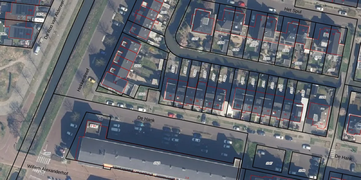 Gebruik de zoekbalk of klik op een perceel voor informatie over de adressen binnen dit perceel.
