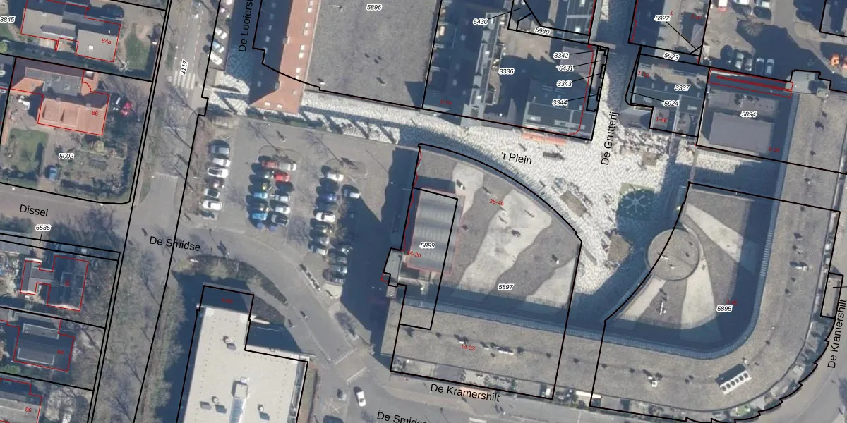 Het perceel waarop het adres ligt is LDN02-F-5899. De afkorting 'LDN02' staat voor kadastrale gemeente Leusden. Het perceel is kleiner dan gemiddeld in Leusden. Het perceel is 335 m² groot, terwijl het gemiddelde ligt op 3491,74 m². De grootste perceeloppervlakte in de kadastrale gemeente is 8,56 km². De kleinste oppervlakte bedraagt 0 m². Er zijn 10 adressen aanwezig op het perceel. De huidige grenzen van het perceel zijn digitaal in de Basisregistratie Kadaster (BRK) geregistreerd op 16-08-2010.