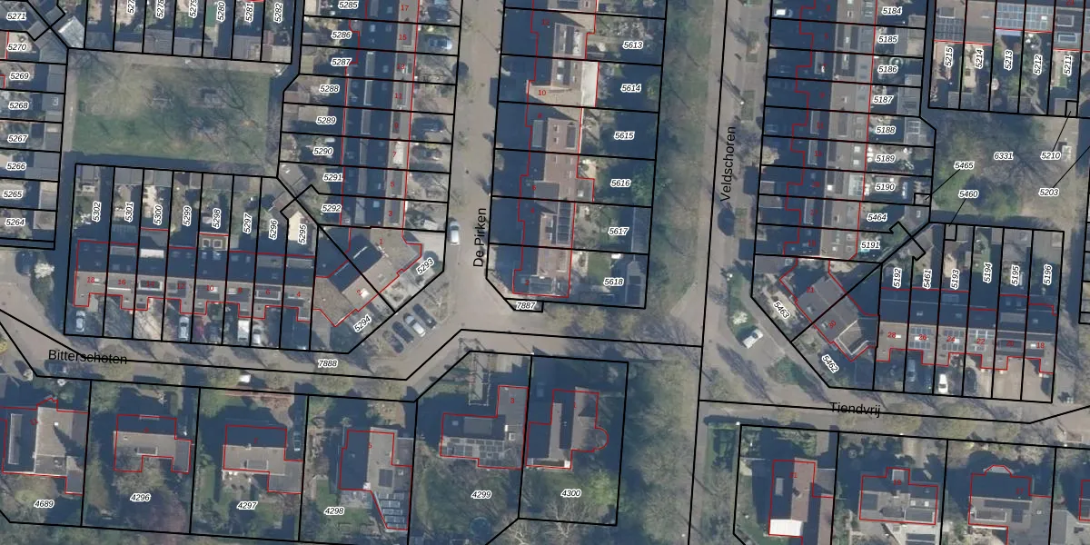 Gebruik de zoekbalk of klik op een perceel voor informatie over de adressen binnen dit perceel.