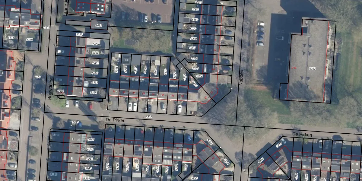 Het perceel waarop De Pirken 20 staat heeft een oppervlakte van 148 m². Dit is een middelgroot perceel. De perceeloppervlakte wordt geregistreerd door het Kadaster. Gedetailleerde informatie over de maten van dit perceel kunt u vinden in het rapport Kadastrale kaart met maatvoering van De Pirken 20.