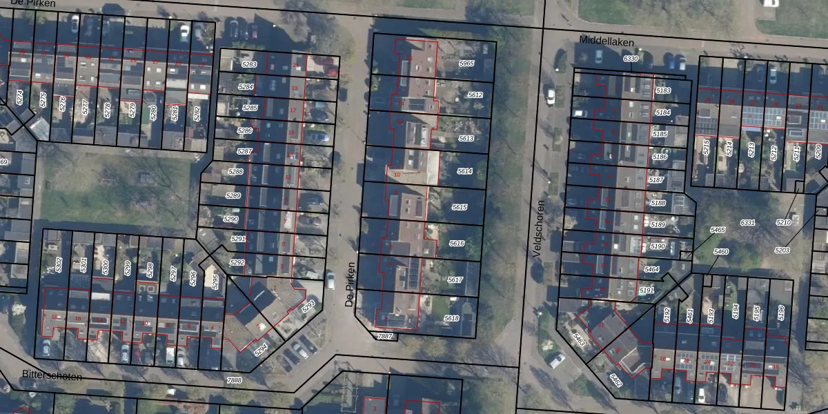 Het perceel waarop De Pirken 8 staat heeft een oppervlakte van 257 m². Dit is een middelgroot perceel. De perceeloppervlakte wordt geregistreerd door het Kadaster. Gedetailleerde informatie over de maten van dit perceel kunt u vinden in het rapport Kadastrale kaart met maatvoering van De Pirken 8.