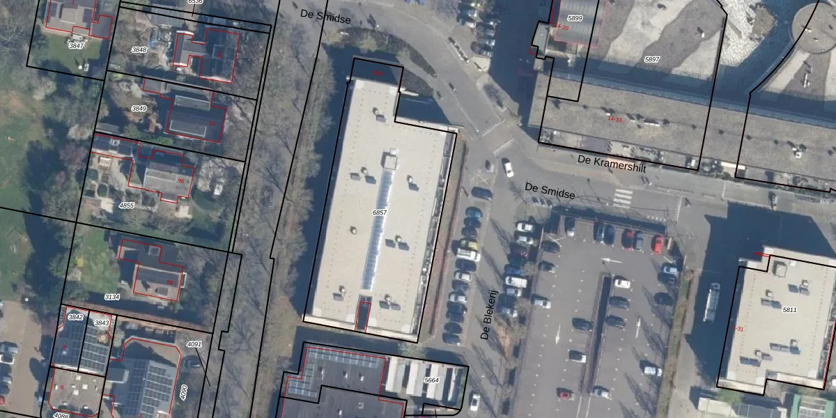 Het perceel waarop De Smidse 43 staat heeft een oppervlakte van 1582 m². Dit is een zeer groot perceel. De perceeloppervlakte wordt geregistreerd door het Kadaster. Gedetailleerde informatie over de maten van dit perceel kunt u vinden in het rapport Kadastrale kaart met maatvoering van De Smidse 43.