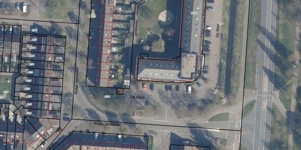 Het perceel waarop De Start 5 staat heeft een oppervlakte van 1917 m². Dit is een zeer groot perceel. De perceeloppervlakte wordt geregistreerd door het Kadaster. Gedetailleerde informatie over de maten van dit perceel kunt u vinden in het rapport Kadastrale kaart met maatvoering van De Start 5.