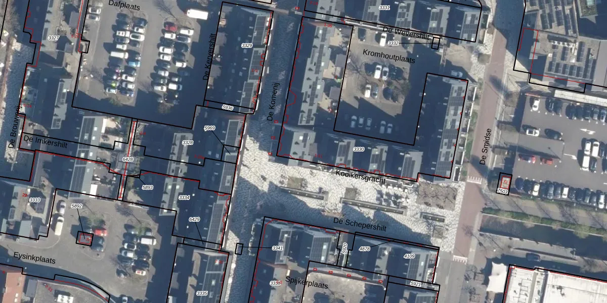Het perceel waarop De Wevershilt 1 staat heeft een oppervlakte van 1596 m². Dit is een zeer groot perceel. De perceeloppervlakte wordt geregistreerd door het Kadaster. Gedetailleerde informatie over de maten van dit perceel kunt u vinden in het rapport Kadastrale kaart met maatvoering van De Wevershilt 1.