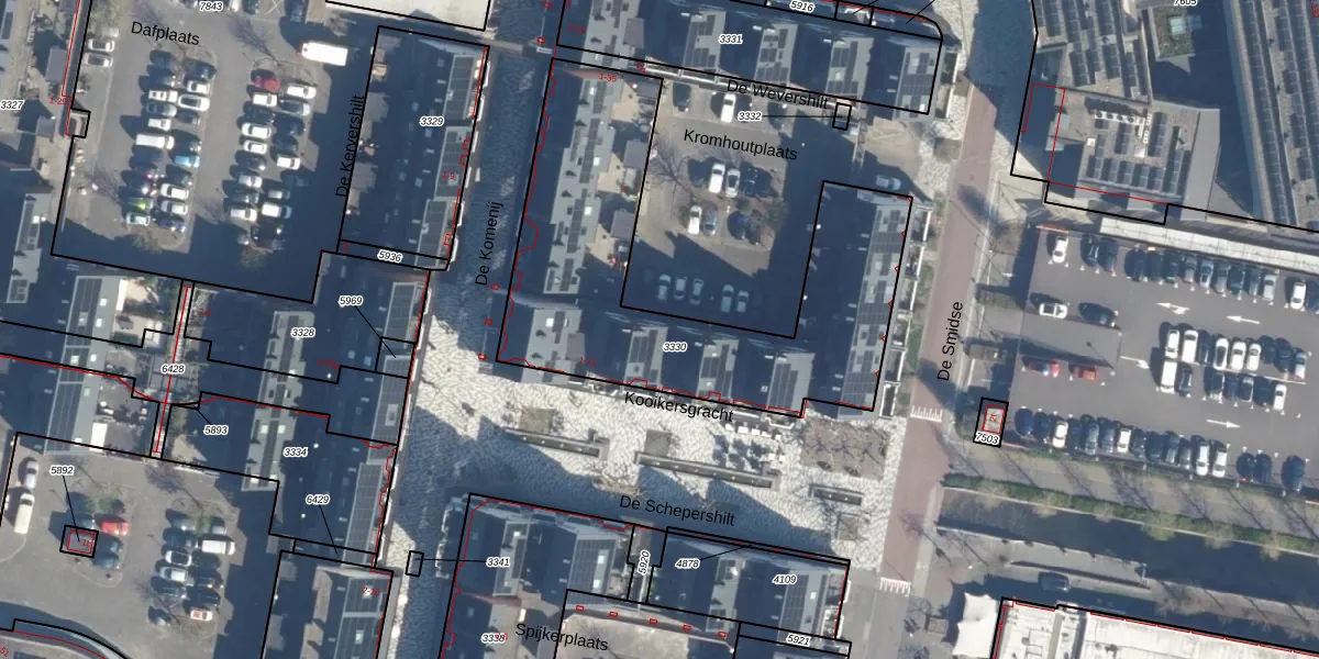 Het perceel waarop De Wevershilt 28 staat heeft een oppervlakte van 1596 m². Dit is een zeer groot perceel. De perceeloppervlakte wordt geregistreerd door het Kadaster. Gedetailleerde informatie over de maten van dit perceel kunt u vinden in het rapport Kadastrale kaart met maatvoering van De Wevershilt 28.