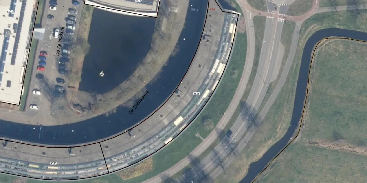 Het perceel waarop De Zeilmakerij 16 staat heeft een oppervlakte van 1935 m². Dit is een zeer groot perceel. De perceeloppervlakte wordt geregistreerd door het Kadaster. Gedetailleerde informatie over de maten van dit perceel kunt u vinden in het rapport Kadastrale kaart met maatvoering van De Zeilmakerij 16.
