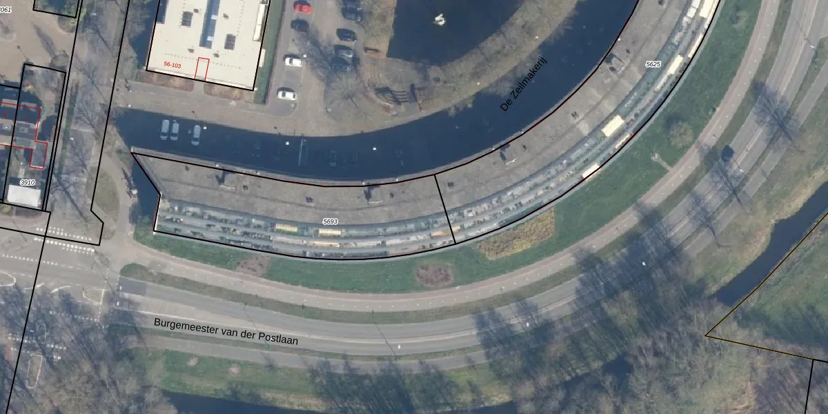 Het perceel waarop De Zeilmakerij 37 staat heeft een oppervlakte van 1270 m². Dit is een zeer groot perceel. De perceeloppervlakte wordt geregistreerd door het Kadaster. Gedetailleerde informatie over de maten van dit perceel kunt u vinden in het rapport Kadastrale kaart met maatvoering van De Zeilmakerij 37.