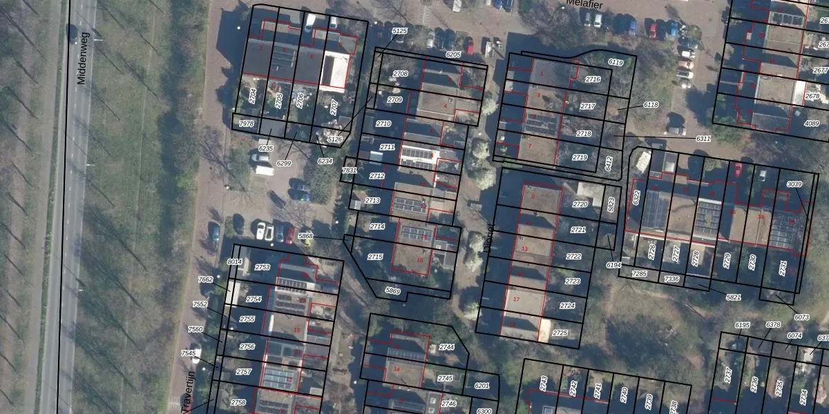 Het perceel waarop het adres ligt is LDN02-F-2713. De afkorting 'LDN02' staat voor kadastrale gemeente Leusden. Het perceel is kleiner dan gemiddeld in Leusden. Het perceel is 158 m² groot, terwijl het gemiddelde ligt op 3491,74 m². De grootste perceeloppervlakte in de kadastrale gemeente is 8,56 km². De kleinste oppervlakte bedraagt 0 m². Op het perceel bevinden zich geen andere adressen. De huidige grenzen van het perceel zijn digitaal in de Basisregistratie Kadaster (BRK) geregistreerd op 02-10-2009.