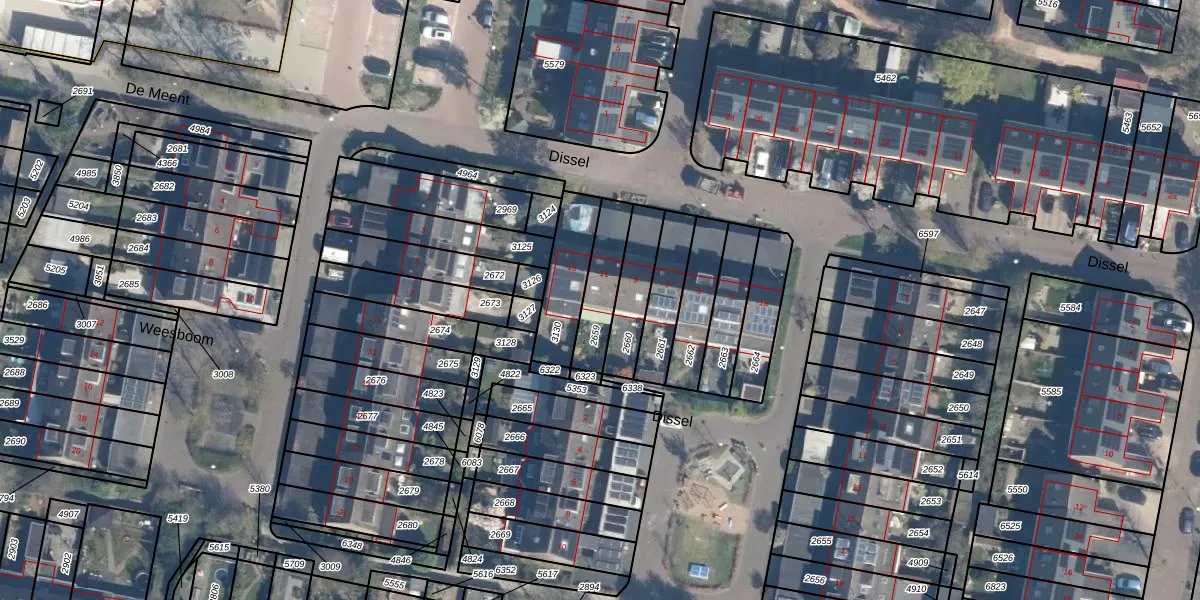 Gebruik de zoekbalk of klik op een perceel voor informatie over de adressen binnen dit perceel.