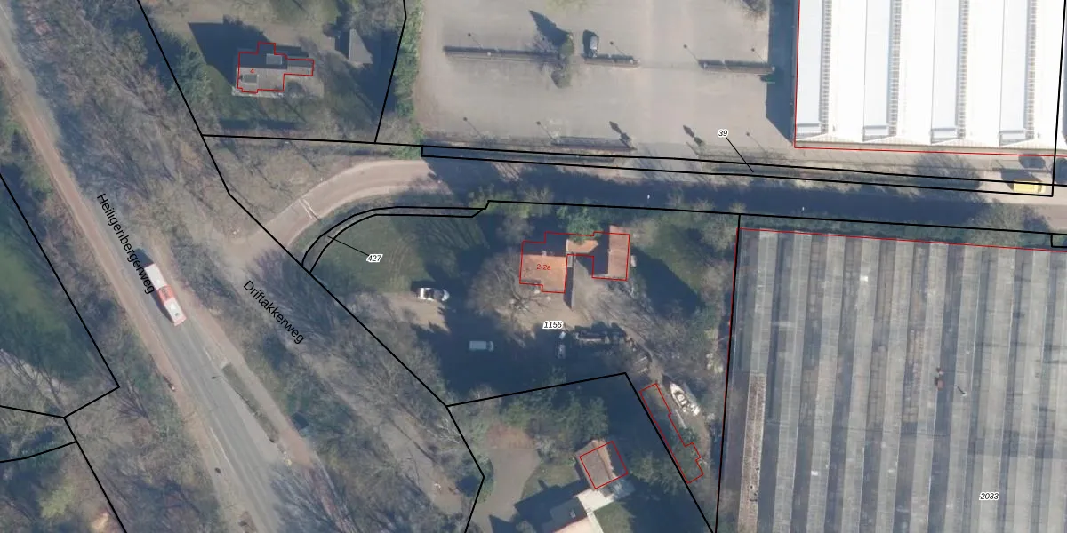 Driftakkerweg 2 is gelegen op kadastraal perceel LDN02I1156. Deze kadastrale aanduiding is uniek en wordt gebruikt door het Kadaster om eigendomsrechten en andere zakelijke rechten vast te leggen. Het perceel maakt onderdeel uit van de kadastrale gemeente Leusden.