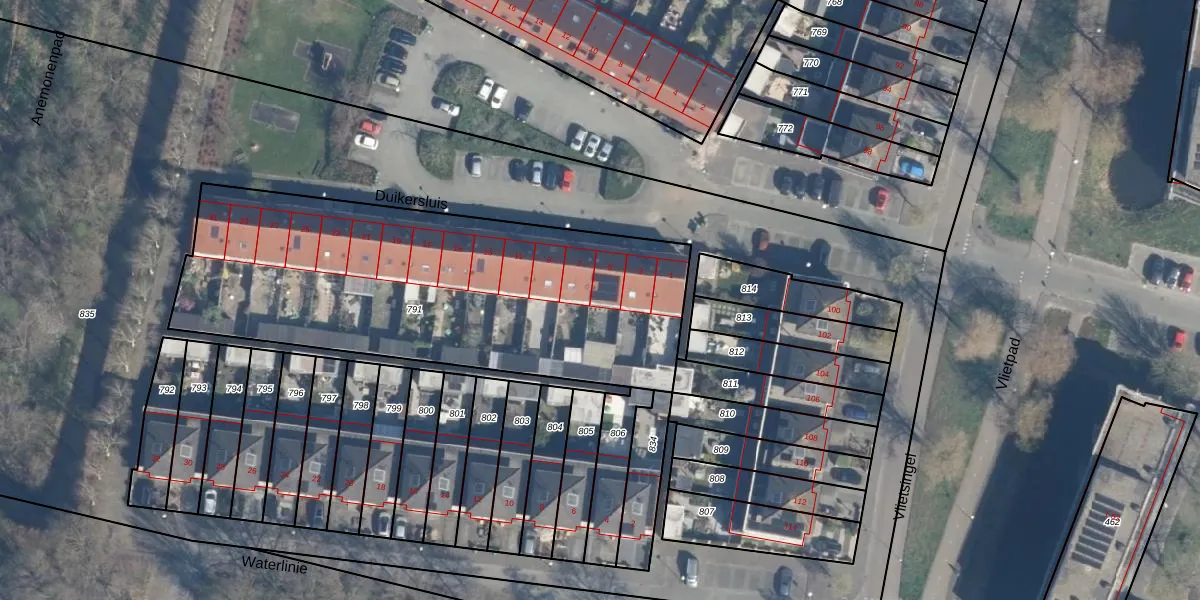 Het perceel waarop Duikersluis 5 staat heeft een oppervlakte van 2061 m². Dit is een zeer groot perceel. De perceeloppervlakte wordt geregistreerd door het Kadaster. Gedetailleerde informatie over de maten van dit perceel kunt u vinden in het rapport Kadastrale kaart met maatvoering van Duikersluis 5.