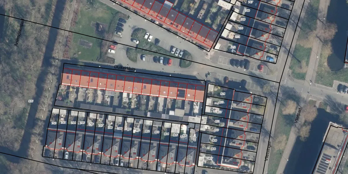 Het perceel waarop Duikersluis 7 staat heeft een oppervlakte van 2061 m². Dit is een zeer groot perceel. De perceeloppervlakte wordt geregistreerd door het Kadaster. Gedetailleerde informatie over de maten van dit perceel kunt u vinden in het rapport Kadastrale kaart met maatvoering van Duikersluis 7.