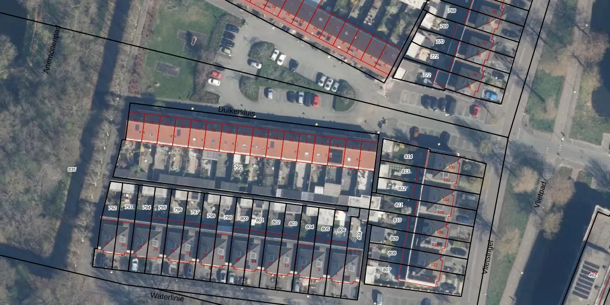 Het perceel waarop Duikersluis 9 staat heeft een oppervlakte van 2061 m². Dit is een zeer groot perceel. De perceeloppervlakte wordt geregistreerd door het Kadaster. Gedetailleerde informatie over de maten van dit perceel kunt u vinden in het rapport Kadastrale kaart met maatvoering van Duikersluis 9.