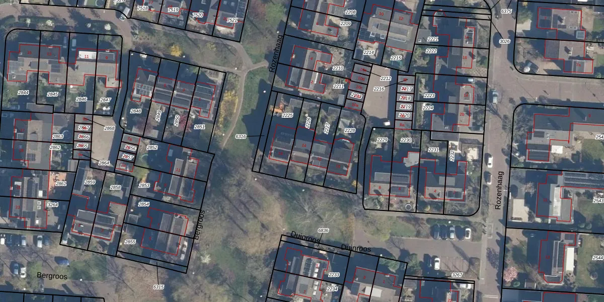 Gebruik de zoekbalk of klik op een perceel voor informatie over de adressen binnen dit perceel.