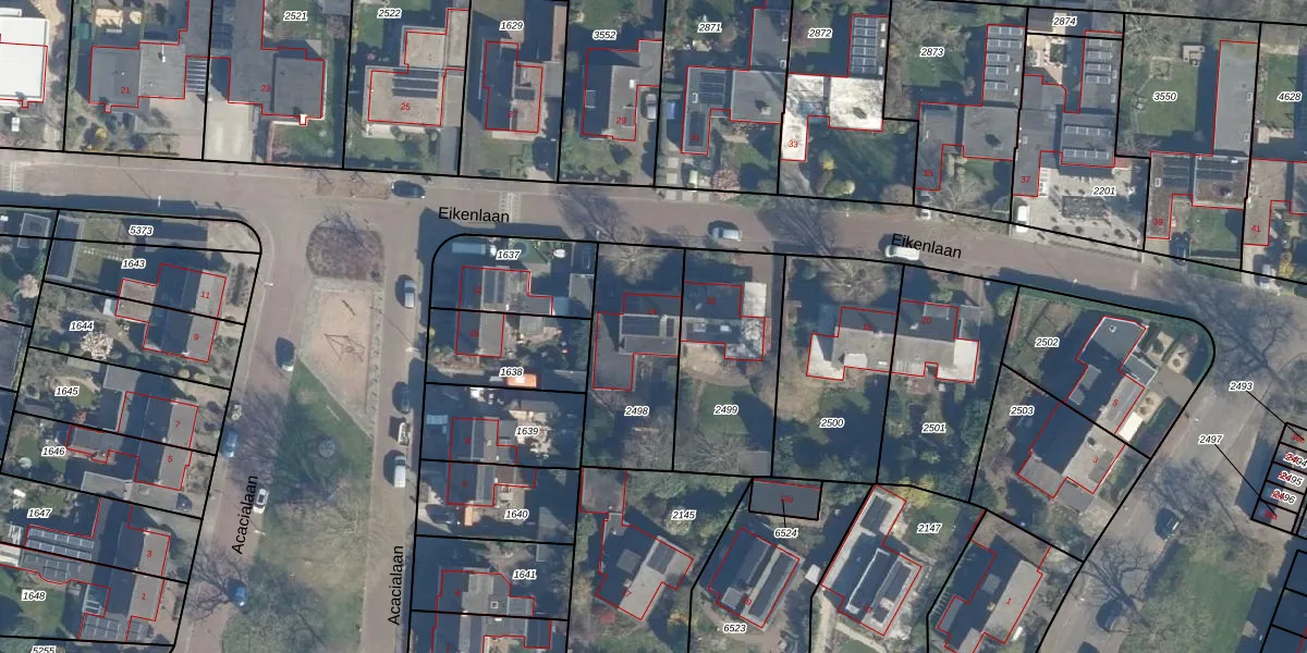 Het perceel waarop Eikenlaan 14 staat heeft een oppervlakte van 474 m². Dit is een groot perceel. De perceeloppervlakte wordt geregistreerd door het Kadaster. Gedetailleerde informatie over de maten van dit perceel kunt u vinden in het rapport Kadastrale kaart met maatvoering van Eikenlaan 14.