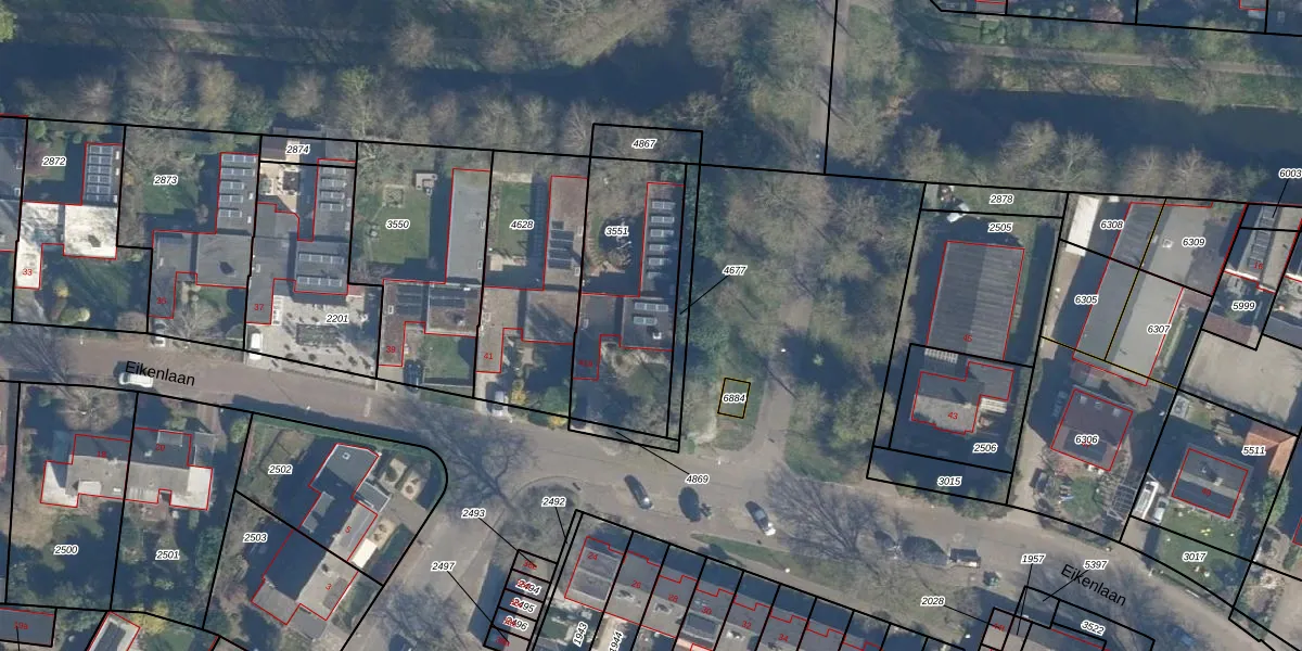 Het perceel waarop Eikenlaan 41-a staat heeft een oppervlakte van 618 m². Dit is een groot perceel. De perceeloppervlakte wordt geregistreerd door het Kadaster. Gedetailleerde informatie over de maten van dit perceel kunt u vinden in het rapport Kadastrale kaart met maatvoering van Eikenlaan 41-a.