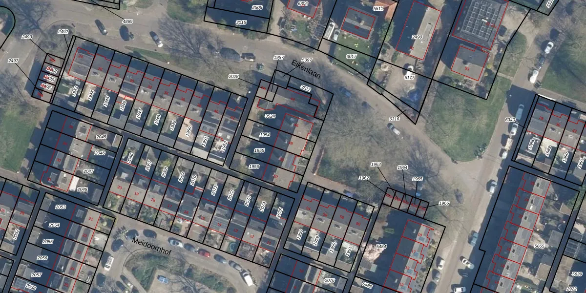 Eikenlaan 48 is gelegen op kadastraal perceel LDN02E1954. Deze kadastrale aanduiding is uniek en wordt gebruikt door het Kadaster om eigendomsrechten en andere zakelijke rechten vast te leggen. Het perceel maakt onderdeel uit van de kadastrale gemeente Leusden.