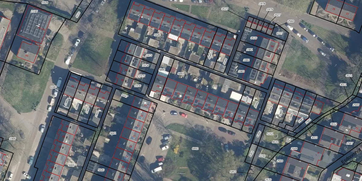 Het perceel waarop Esdoornhof 33 staat heeft een oppervlakte van 1025 m². Dit is een zeer groot perceel. De perceeloppervlakte wordt geregistreerd door het Kadaster. Gedetailleerde informatie over de maten van dit perceel kunt u vinden in het rapport Kadastrale kaart met maatvoering van Esdoornhof 33.