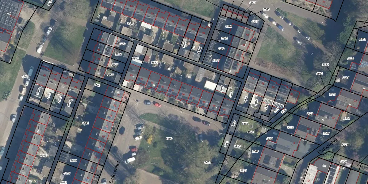 Het perceel waarop Esdoornhof 39 staat heeft een oppervlakte van 1025 m². Dit is een zeer groot perceel. De perceeloppervlakte wordt geregistreerd door het Kadaster. Gedetailleerde informatie over de maten van dit perceel kunt u vinden in het rapport Kadastrale kaart met maatvoering van Esdoornhof 39.
