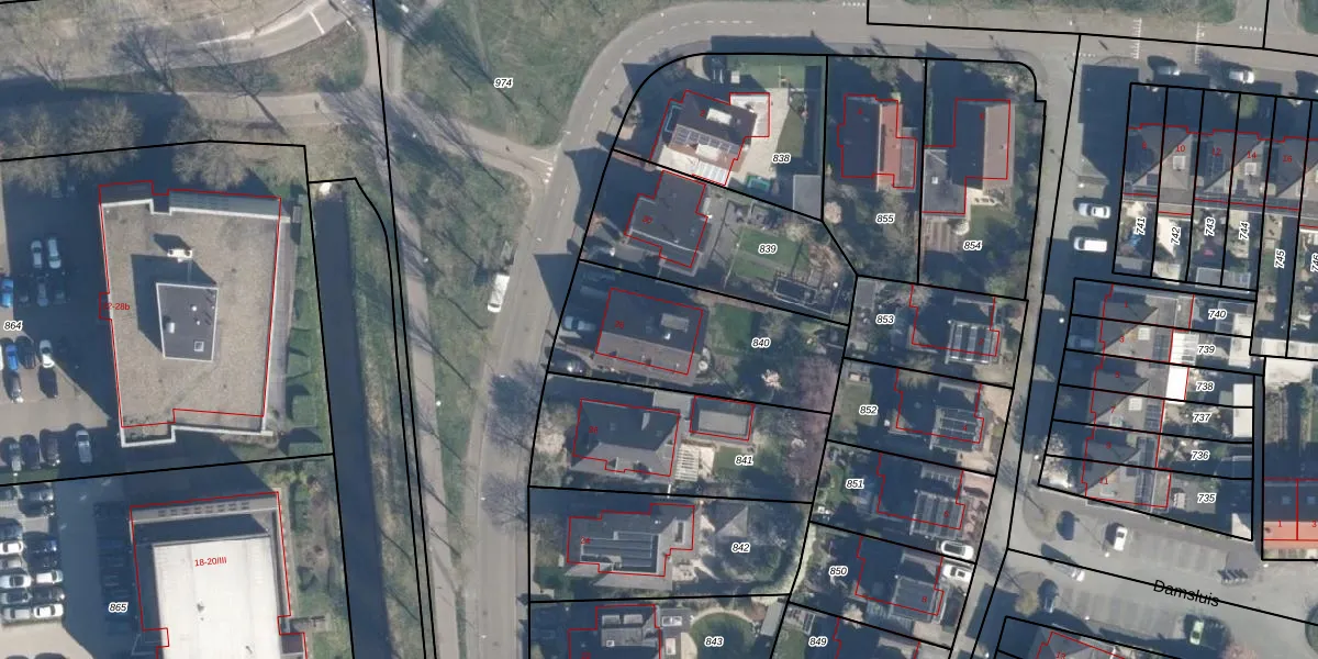 Gebruik de zoekbalk of klik op een perceel voor informatie over de adressen binnen dit perceel.