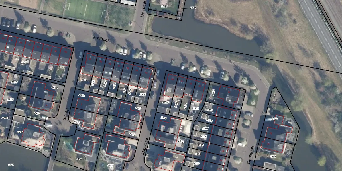 Het perceel waarop Genthoek 39 staat heeft een oppervlakte van 187 m². Dit is een middelgroot perceel. De perceeloppervlakte wordt geregistreerd door het Kadaster. Gedetailleerde informatie over de maten van dit perceel kunt u vinden in het rapport Kadastrale kaart met maatvoering van Genthoek 39.