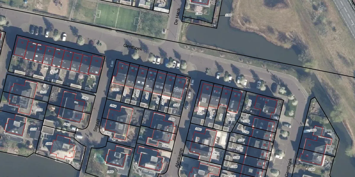 Het perceel waarop Genthoek 41 staat heeft een oppervlakte van 184 m². Dit is een middelgroot perceel. De perceeloppervlakte wordt geregistreerd door het Kadaster. Gedetailleerde informatie over de maten van dit perceel kunt u vinden in het rapport Kadastrale kaart met maatvoering van Genthoek 41.