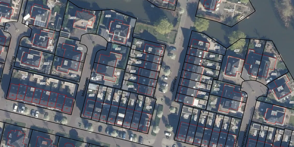 Gebruik de zoekbalk of klik op een perceel voor informatie over de adressen binnen dit perceel.