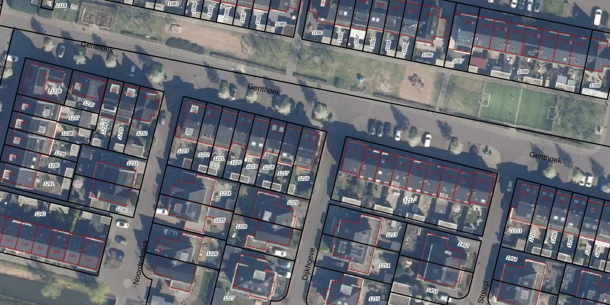 Het perceel waarop Genthoek 73 staat heeft een oppervlakte van 185 m². Dit is een middelgroot perceel. De perceeloppervlakte wordt geregistreerd door het Kadaster. Gedetailleerde informatie over de maten van dit perceel kunt u vinden in het rapport Kadastrale kaart met maatvoering van Genthoek 73.
