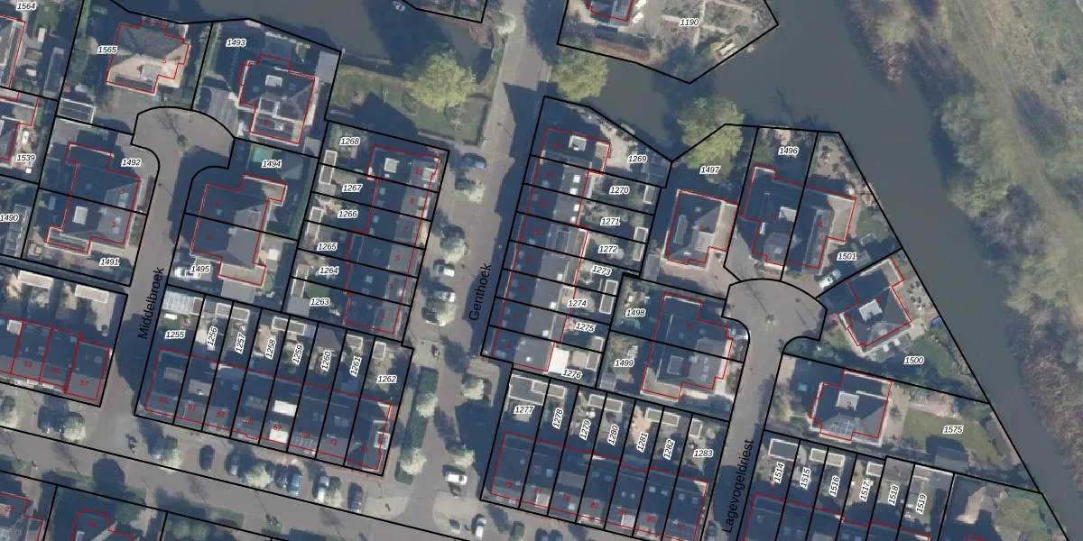 Gebruik de zoekbalk of klik op een perceel voor informatie over de adressen binnen dit perceel.