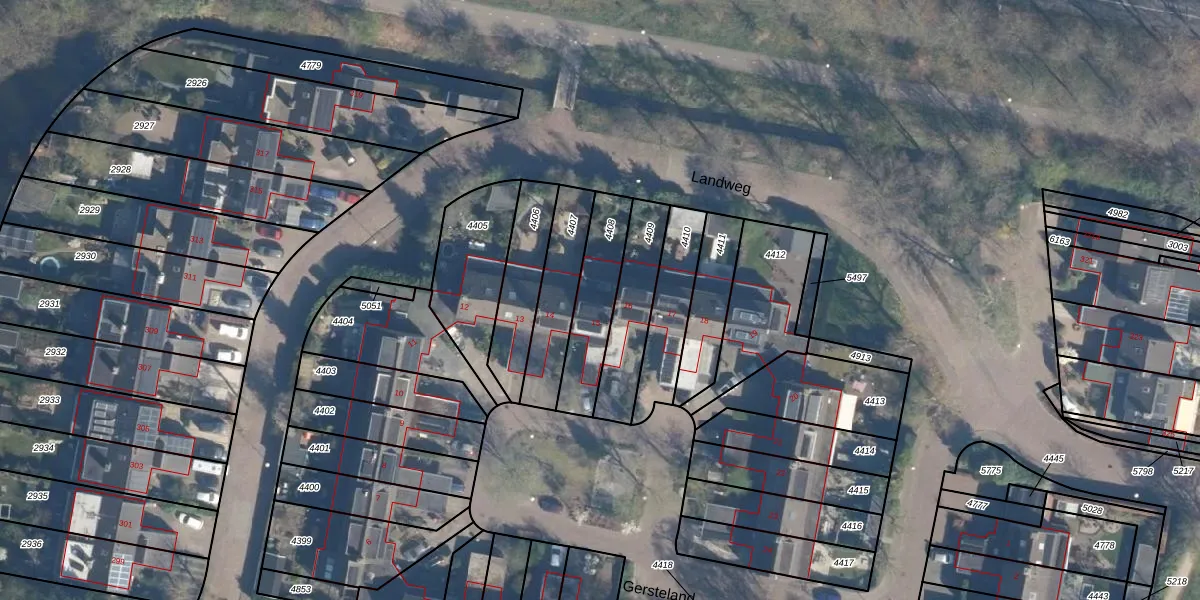 Gersteland 15 is gelegen op kadastraal perceel LDN02E4408. Deze kadastrale aanduiding is uniek en wordt gebruikt door het Kadaster om eigendomsrechten en andere zakelijke rechten vast te leggen. Het perceel maakt onderdeel uit van de kadastrale gemeente Leusden.