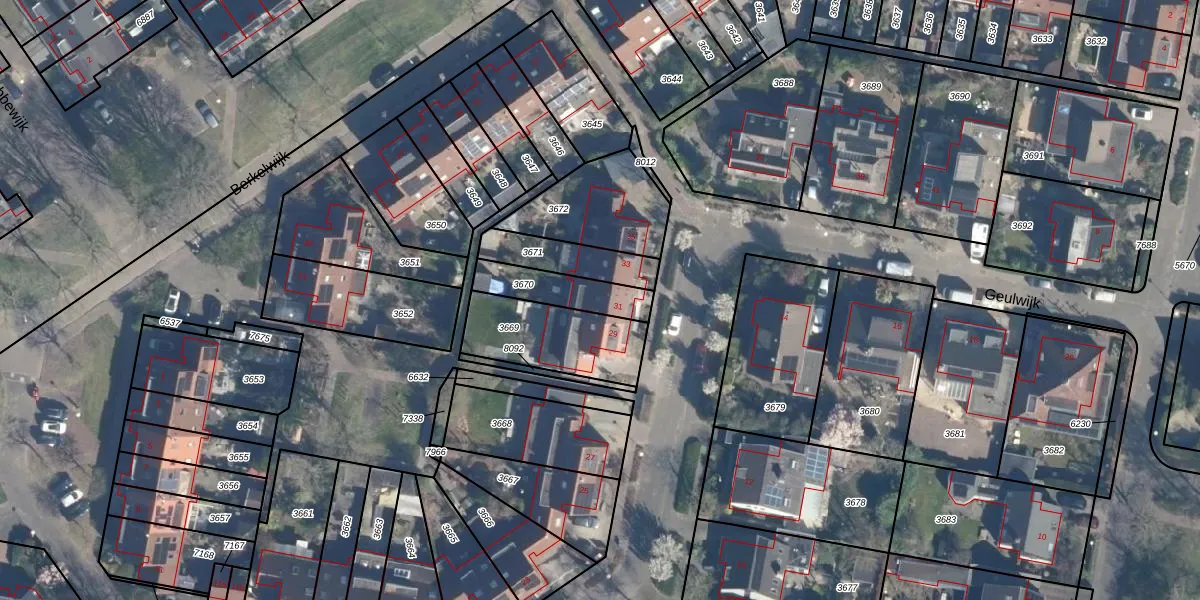 Geulwijk 31 is gelegen op kadastraal perceel LDN02F3670. Deze kadastrale aanduiding is uniek en wordt gebruikt door het Kadaster om eigendomsrechten en andere zakelijke rechten vast te leggen. Het perceel maakt onderdeel uit van de kadastrale gemeente Leusden.