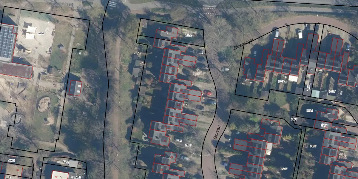 Het perceel waarop Gorzen 14 staat heeft een oppervlakte van 5085 m². Dit is een zeer groot perceel. De perceeloppervlakte wordt geregistreerd door het Kadaster. Gedetailleerde informatie over de maten van dit perceel kunt u vinden in het rapport Kadastrale kaart met maatvoering van Gorzen 14.