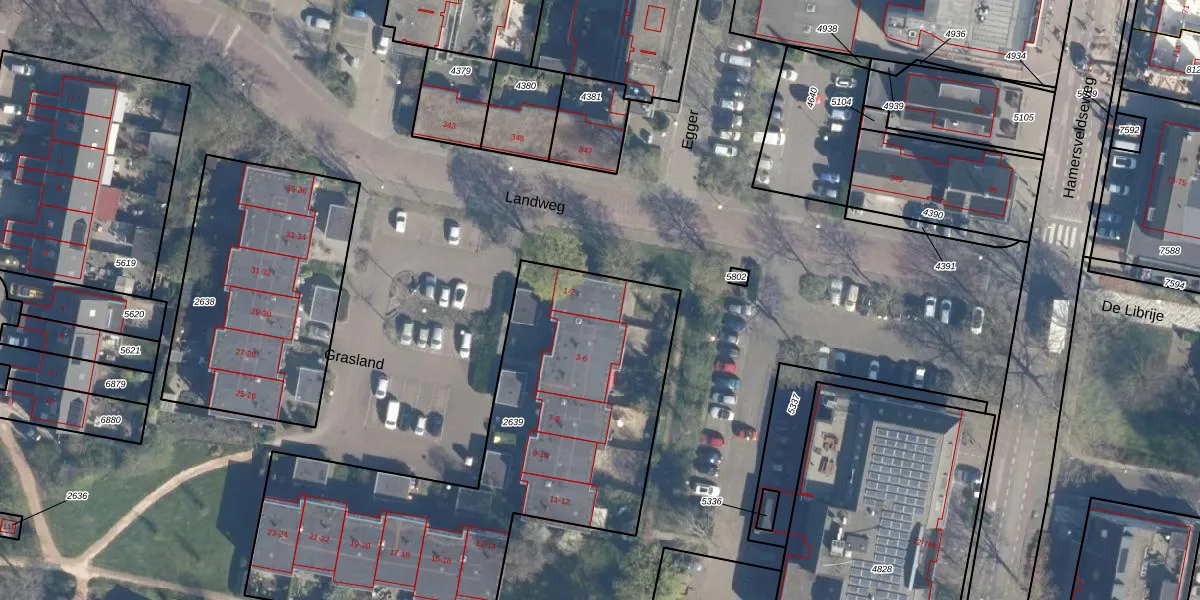 Grasland 1 is gelegen op kadastraal perceel LDN02E2639. Deze kadastrale aanduiding is uniek en wordt gebruikt door het Kadaster om eigendomsrechten en andere zakelijke rechten vast te leggen. Het perceel maakt onderdeel uit van de kadastrale gemeente Leusden.